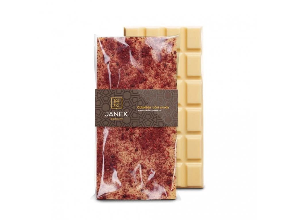 Bílá čokoláda s drcenými lyofilizovanými malinami a ostružinami