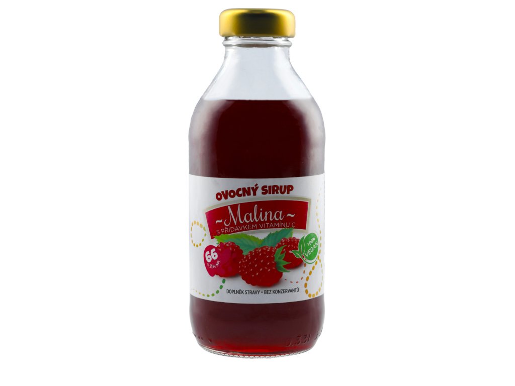 Malinový sirup z kvalitních malin s přídavkem vitamínu C.
