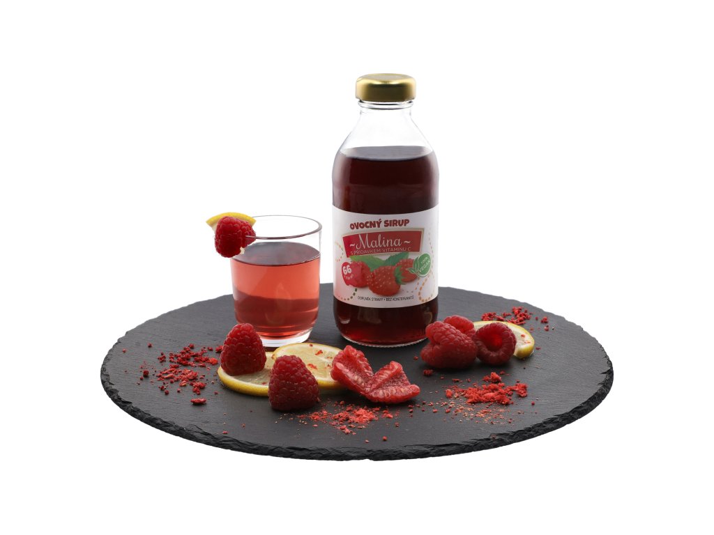 Malinový sirup z kvalitních malin s přídavkem vitamínu C.
